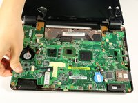 To remove the motherboard from the netbook housing, you must detach it from the bottom black piece of the netbook.