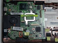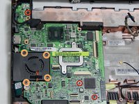 Remove the three 5.5 mm screws holding the motherboard to the motherboard plastic frame.