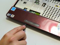 Insert the flat end of the spudger into the small gap between the top of the keyboard and the plastic of the laptop.