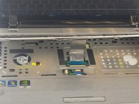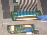 Pull the blue tab for the touchpad connector before removing the cover plate completely.