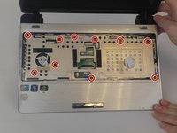 Remove the eight 6.5mm screws using the J0 Phillips head screwdriver from back of the netbook.