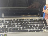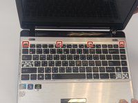 Open the netbook to find the four small grooves along the top of the keyboard.