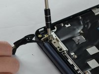 Unscrew the four screws using Philips #2 screwdriver that connect the screen to the inside of the case for the laptop.