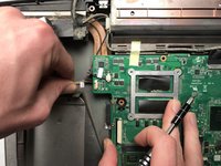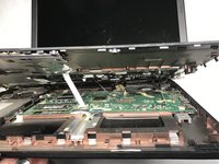 Some steps missing, regarding screws to remove: 1 screw that holds optical drive; once that is removed, 2 screws in the drive compartment; 2 screws in the battery compartment; 3 screws from the bottom of the motherboard.