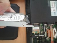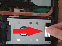 Once the screws are removed, slide the hard drive to the right, with the help of the tab.