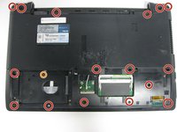 Remove the following seventeen screws from the back panel of your laptop using your Phillips #0 screwdriver: