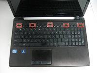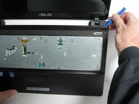 Using the blue prying tool, separate the keyboard from the palm rest by inserting the prying tool into each of the five tabs at the top of the keyboard.