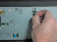 Remove the two black 7.0 mm Phillips #0 screws on the back panel using your Phillips #0 screwdriver.