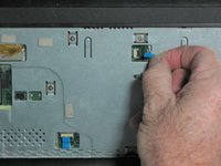 Using your fingers, slowly remove the silver ribbon cable from the laptop by disconnecting it from its connector.