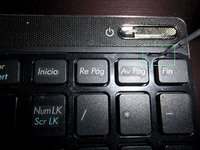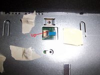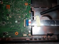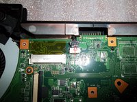 Release the keyboard ribbon from the motherboard by carefully sliding the black plastic part of the connector to the right.
