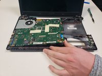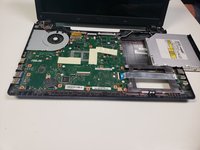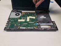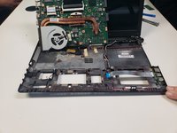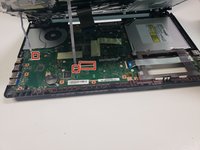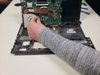 lift up on the entire motherboard and unplug the bottom wires connected to the fan.