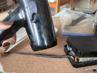 place the wider heat shrink tubing over the covered joint, heat it up with the hair dryer, make sure you heat the entire surface of the tubing