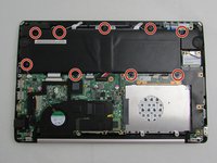 Remove the nine Phillips #00 screws that hold the battery in place.