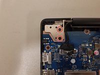 After removing the screws, lift the hinge up slightly to give clearance to the motherboard.
