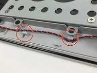 Unhook the red and black twisted wire from the tabs that are between the two speakers. This prevents damage to the wires as the speakers are removed.