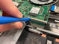 Use the small plastic opening tool to remove the ZIF Connector on the left side of the touch-pad.