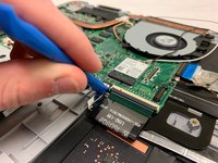 Use the small plastic opening tool to remove the ZIF Connector on the right side of the battery.