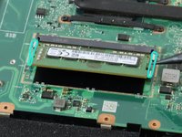 Using a spudger or your fingers, gently pull the metal brackets away from the RAM.