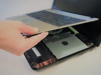 Gently pull up on the locking tab to release the ribbon cable. This should take no force to complete.