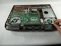 Remove the three screws surrounding each fan shown along with the ribbon cables connecting them to the motherboard. (4mm Phillips 00)