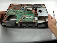 Use a Phillips #00 to remove seven 4.0 mm screws connecting the motherboard to the case.