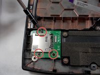 • Remove three 3mm Phillips #0 screws from the SD card reader.