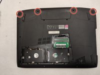 Use a pair of tweezers to remove the top four rubber stoppers found on the bottom of the laptop.