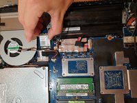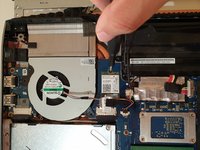 Using a Phillips #00 screwdriver, remove the two 5.8mm screws that connect the left fan to the motherboard.