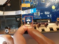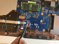 Disconnect the battery cable from its motherboard socket by gently pulling it towards the left of the socket.