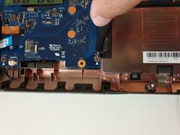 Unscrew and remove the three 5.8mm screws on the small circuit board to the right of the right side fan with a Phillips #00 screwdriver.