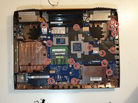 Unscrew eighteen 5.8 mm screws from the motherboard with a Phillips #00 screwdriver.