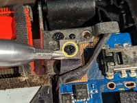 Remove radio module screw (red) and pull it out of connector.