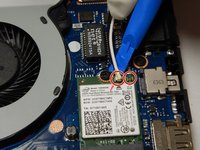 Using the iFixit Opening Tool, disconnect the black and white coaxial cables from the wifi card.