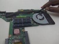 Unscrew the 7 8mm screws holding in the cooling fan using a Phillips #00 screwdriver.