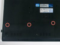 Remove the 3 Phillips #00 screws holding on the back cover of the laptop.