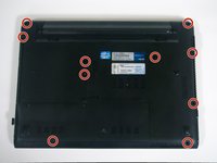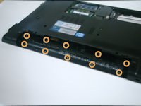 Remove the 10 Phillips #00 screws from the bottom of the laptop.