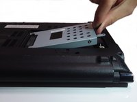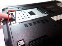 Unscrew the three screws on the hard drive panel using a Phillips Head #00 screwdriver.
