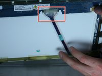Remove the connector from the display and slowly pull the cable away, peeling the tape back along the way.