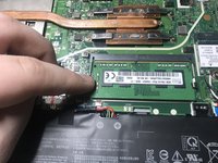 Once the RAM is inserted, gently push down on the module until you hear a click.