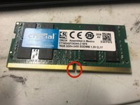 Line up the notch on the new memory module with the notch on the slot and insert the module at an angle.