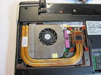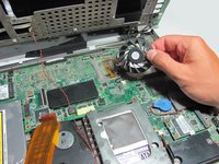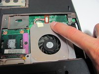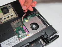 From the front of the laptop, remove the tape holding down the fan's cable.