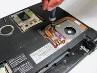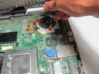 Remove the 3 4 mm Phillips head screws holding down the fan on inside of the laptop.