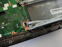 This disconnects the face of the keyboard. Gently lift the keyboard up to expose the motherboard.