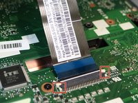 Using precision tweezers, flip up the white and black retaining flaps on the ZIF connectors that hold the two smaller ribbon cables in place.