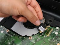 Use a Phillips #0 head screwdriver to remove the one black 4 mm screw from the indented area above the fan.