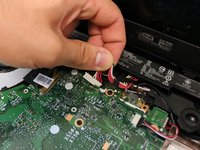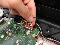 Gently pull the red, black, and white wire found on the top right-hand corner of the motherboard.