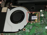 Gently pull the thick wire in between the fan and the motherboard. To release the wire connected to the motherboard, gently pull towards the cooling fan.