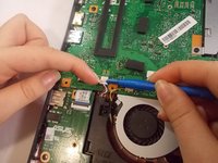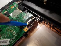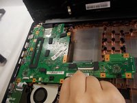 • Do not pull too hard, the motherboard should come off easily once it has been separated from the base of the laptop.