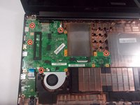 • Use a Phillips #0 screwdriver (PH0 bit) to remove the five 6.0 mm screws attaching the motherboard to the base of the laptop.