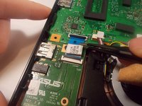 • Remove the bundled cable connector that attaches the audio to the motherboard with the plastic iFixit opening tool.
